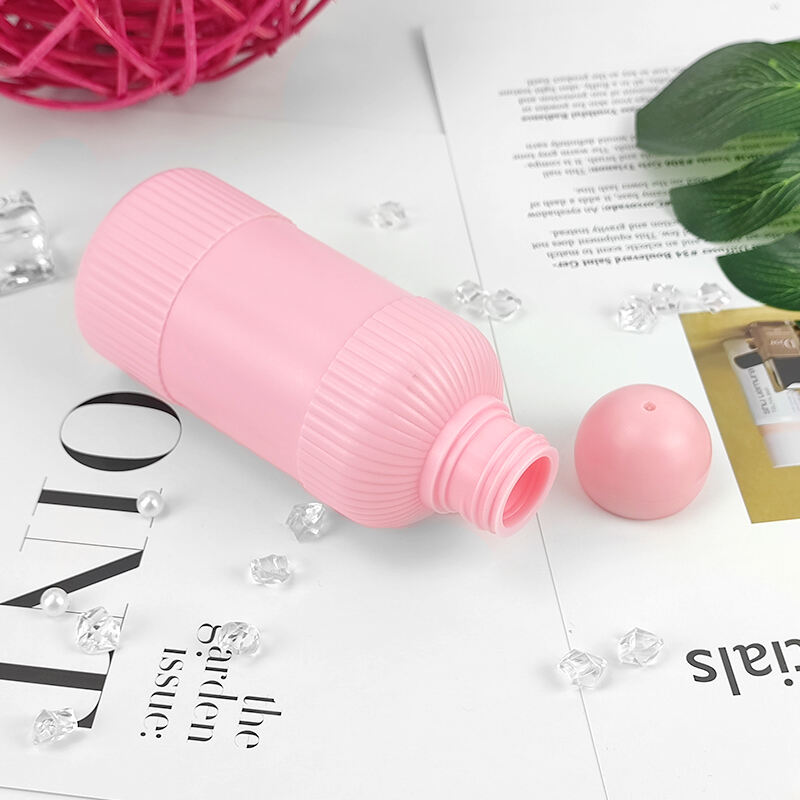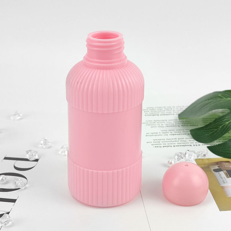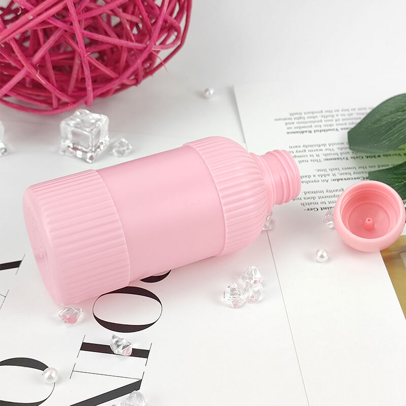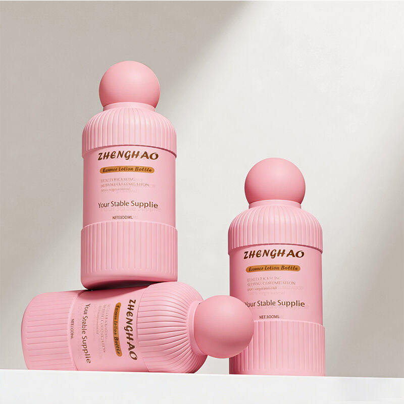 ZH-C70005- 100ml pink plastic bottle. This bottle is made by high quality HDPE material.The round dome cap adds a unique visual appeal. The smooth bottle body, with ribbed textures on the top and bottom, has a powerful tactile effect. The 100ml capacity is the perfect portable travel-sized skin care bottle, which is very suitable for the size of cosmetics and skin care products, such as sunscreen, face lotion, body lotion,hand lotion, essence, toner, etc.