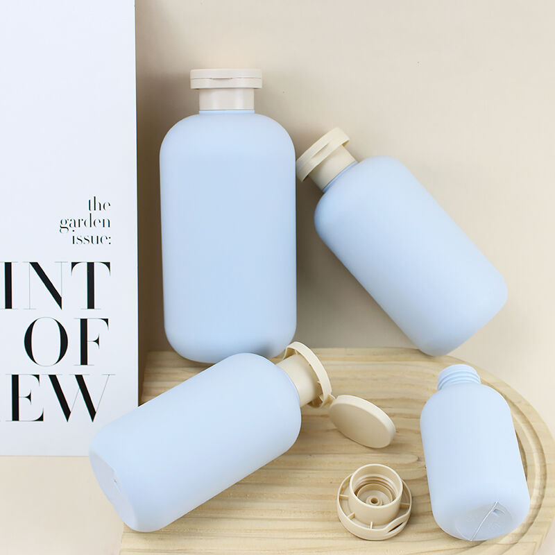 ZH-HDPE04 is a series of round, empty blue shampoo bottle containers made of HDPE material, featuring sturdiness, durability and chemical resistance. It is suitable for products such as shampoo, body wash and conditioner. The surface of the bottle has undergone soft touch treatment, achieving a touch similar to rubber paint, making the bottle more high-end and luxurious, and helping the brand stand out on the shelves. The top is equipped with a flip-top cover, allowing the emulsion to flow out evenly through squeezing.