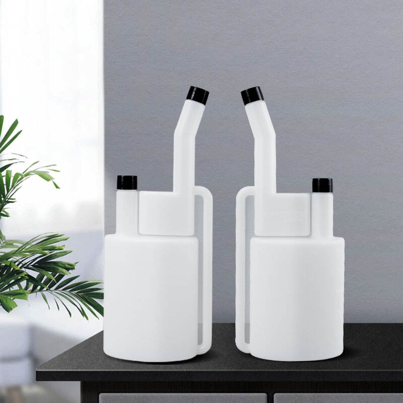 ZH-C70302- 500ml double-necked laboratory chemical liquid packaging bottle. This white HDPE plastic container bottle is suitable for chemical liquids, laboratory reagents, industrial liquids, inks, agricultural liquids and various fluids that need to be handled accurately. This kind of bottle has strong chemical resistance and can provide long-term durability. The design of one large(500ml) and one small dual-chamber and dual-neck (Not interconnected) is suitable for the storage of different liquids and can seamlessly adapt to any usage space. The bottle is engraved with scale lines, which can be used for precise measurement and control of the liquid volume. Its unique design has made it the best choice for liquid applications in laboratories, industries and agriculture.