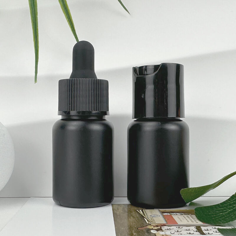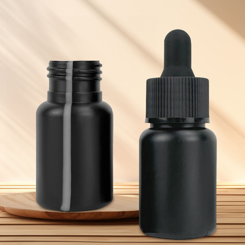 Custom Plastic 1oz Black HDPE Essence liquid Oil Serum Dropper Bottle