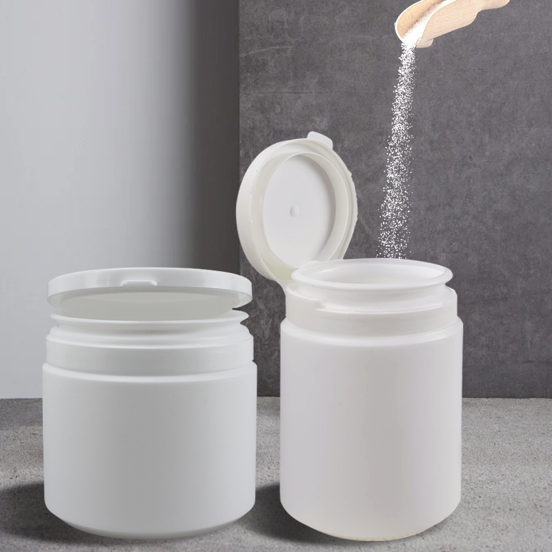 ZH-250826 is a white plastic storage jar made of 100% food-grade HDPE raw materials. This type of jar features a common wide-mouthed design, which is convenient for filling and taking out various products. It is an ideal packaging container for solid powders and pastes such as protein powder, nutritional supplements, food, calcium tablets and candies.