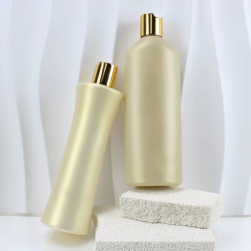 ZH-MB026 is a 500-mi plastic shampoo bottle made of HDPE. It has an elegant light beige appearance, a curved shape, and a shiny golden flap on the top. By gently squeezing the bottle, lotion can flow out, and the bottle looks very luxurious. The overall design exudes an exquisite packaging atmosphere and is highly suitable for the packaging of high-end shampoos, body washes and lotions.